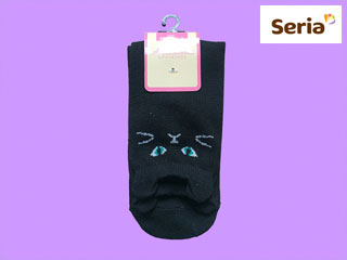 セリア/レディースソックス《黒ネコ》