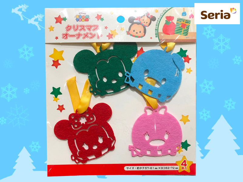 ■セリアほか(2020) ディズニーTSUMTSUMのフェルト製オーナメント。 サイズ:タテ5.7cm〜6.1cm、ヨコ6.2cm〜7.2cm 発売元:株式会社モリトク (中国製)