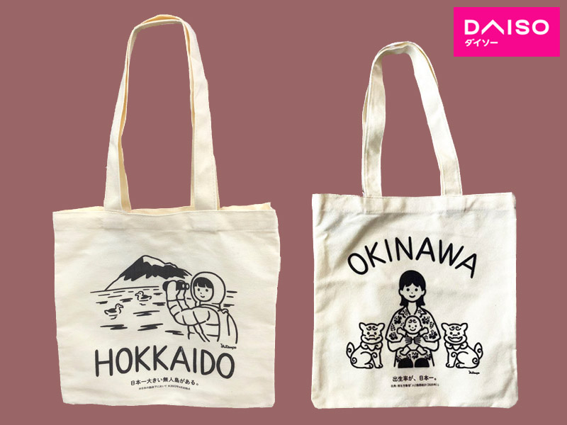 ダイソーが創業50周年を記念して限定発売した47都道府県のトートバッグ。