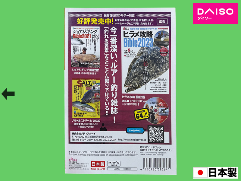 メディアボーイとダイソーのコラボレーションによる釣りのハンドブック。