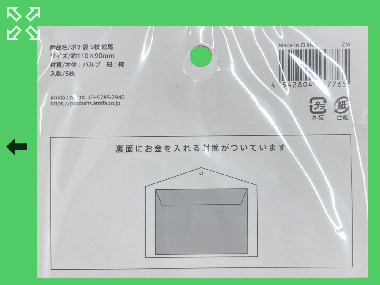 amigano2023年版、ポチ袋、5枚入り