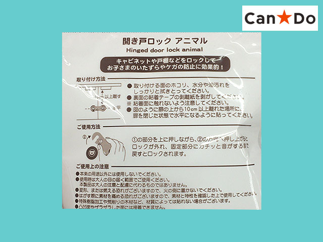 ■キャンドゥ キャビネットや戸棚などの開き戸をロックする。 乳幼児のいたずらやケガの防止に効果的。 ①クマ ②ウサギ ③パンダ