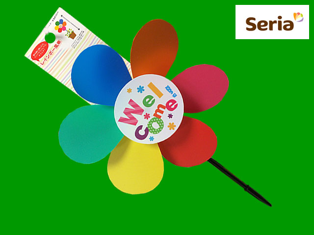 ■セリア ポリプロピレン材質のカラフルな風車。 植木鉢やプランターに挿せば鳥よけとして、室内に飾ればインテリアにもなる。 他にもサイズが大きいものや、ホログラム模様のものもある。 全長サイズ:30cm