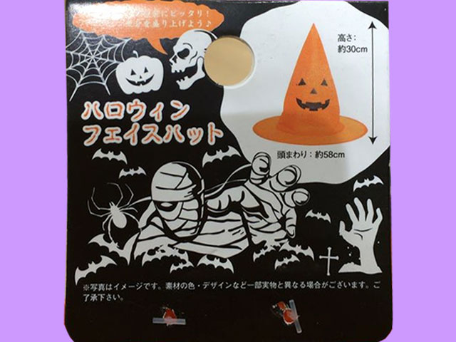 ■セリア(2016〜) カボチャ模様の帽子。 高さ30cm つば周りの直径は58cmと、100均では最大級。