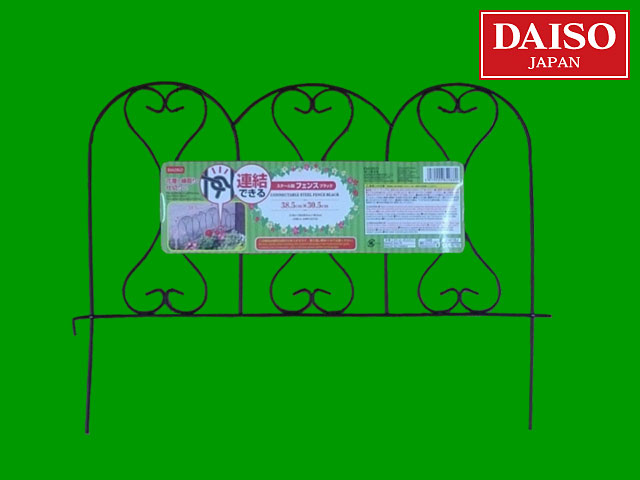 ■ダイソー 連結可能なスチール製花壇フェンス、白・黒の2色。 サイズ:幅38.5cm×高さ30.5cm (中国製)
