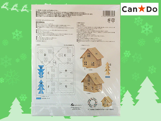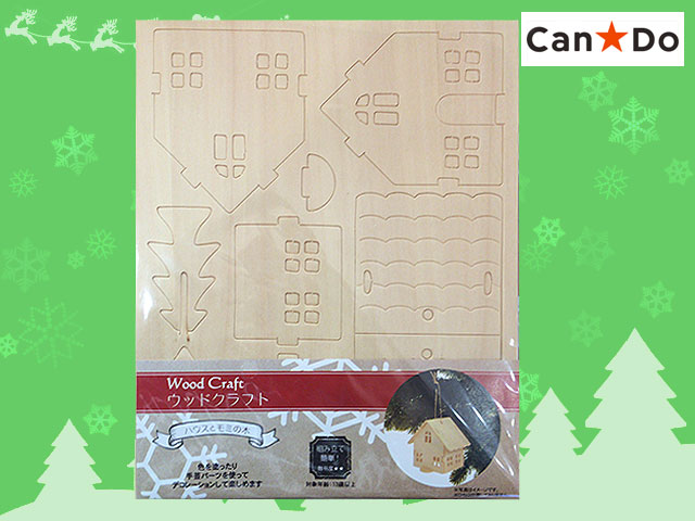 ■キャンドゥ ウッドクラフト。クリスマスシリーズから ハウスとモミの木。 屋根部分に吊り下げ用の穴があるので、ツリーのオーナメントとしても使える。 (ひもは付属していないのでお好みのものを) 本体サイズ 23×18.5 紙やすり1枚付き 組立難易度 ★★