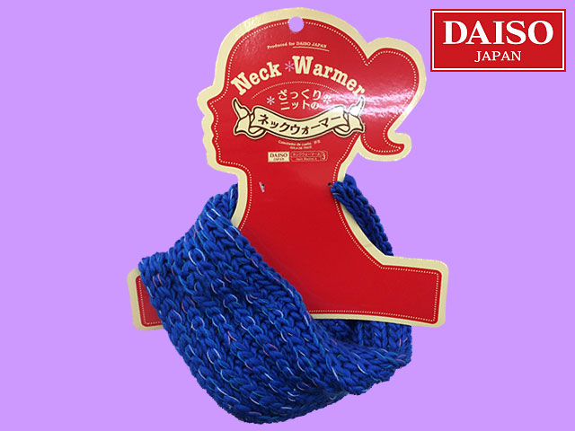 ■ダイソー(2016〜) アクリル毛糸の太目編みネックウォーマー。 サイズは22cm×17cm。 ダイソーには他にも、裏起毛タイプやモヘアタイプなど種類豊富に揃っている。