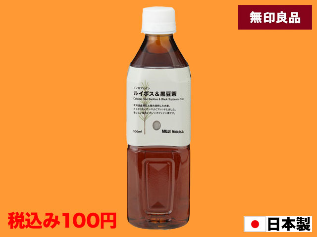 ■無印良品 <引用> 北海道産黒豆と強火焙煎した大麦、ルイボスをバランスよくブレンドしました。香ばしい味わいのノンカフェイン茶です。 容量:500ml (日本製)