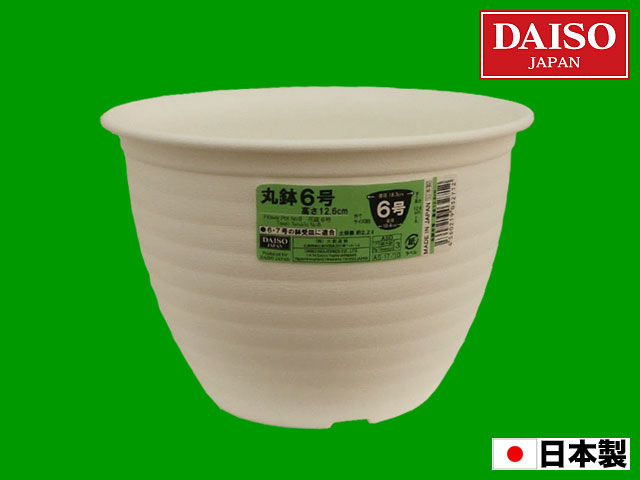 ■ダイソー PPP製の丸鉢6号。鉢皿6号〜7号に合う。 サイズ:高さ12.5cm×直径18.3cm (日本製)
