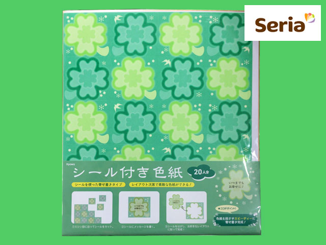 ■セリアほか(2016〜) 協和紙工業製、1枚(20人分)のシールの付いた色紙①フラワーと②クローバーの2種類。 サイズは、縦27.2cm × 横24.2cm ☞他の色紙一覧を見る