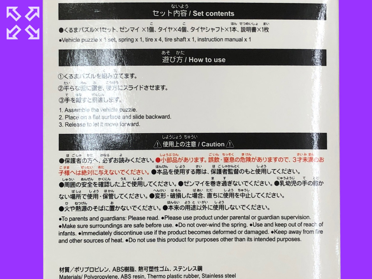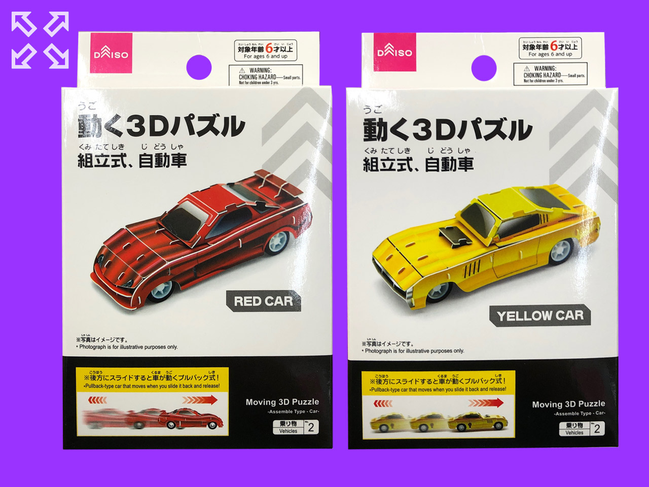 ■ダイソー(2020〜) 完成するとプルバック式で動くパズル模型。自動車、2種類。 (中国製)