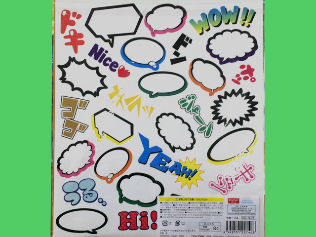 ■ダイソー(2016〜) コミック風のユニークな色紙が作れるセット。 吹き出しシール付き。 (中国製)
