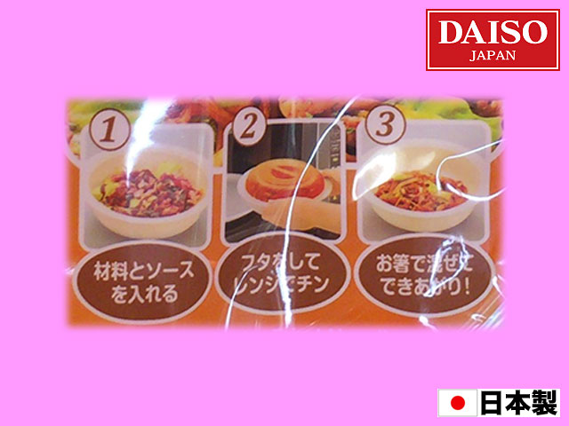 ■ダイソー 電子レンジ用焼きそば調理器具。 具材とソースをセットしたらフタをしてレンジでチン(約5分)。 簡単に焼きそばが作れる。 油を使わないのでとってもヘルシー。 (日本製)