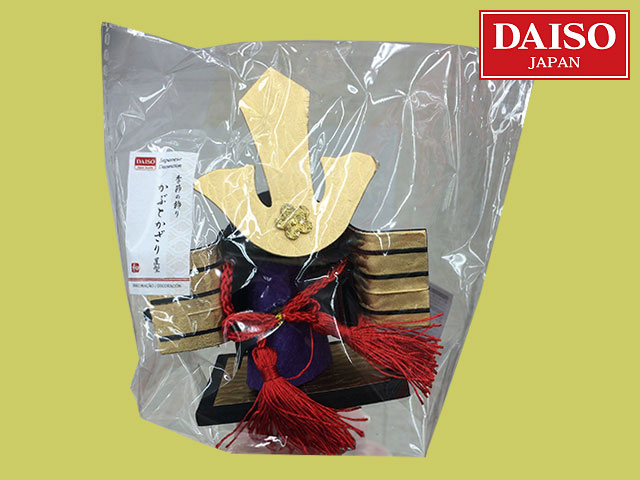 ■ダイソー(2017〜) 置型タイプのかぶとかざり。 100円ながら、なかなかの質感がある。 高さ約15cmほど。