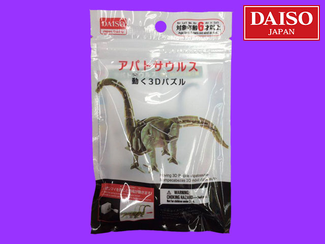 ■ダイソー(2017〜) 完成するとゼンマイ式で動く模型。アパトサウルス。 恐竜シリーズは4種類。対象年齢は6歳以上。 (中国製)