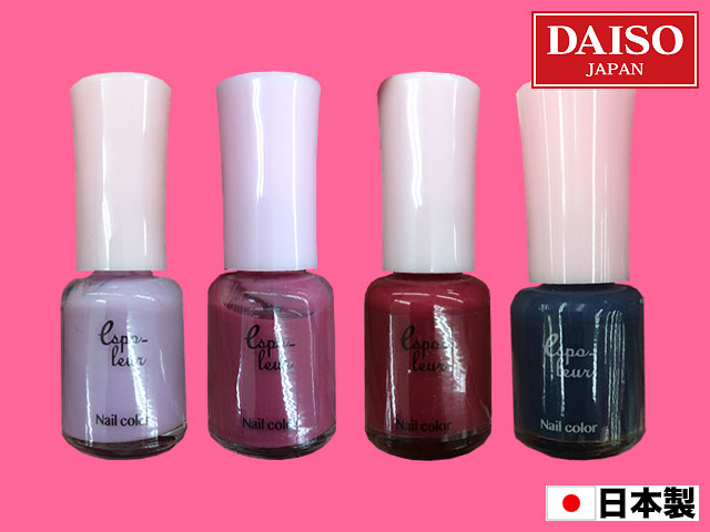 ■ダイソー ネイルカラーポリッシュ。 日本製となって復活したシリーズの第二弾追加カラー。 カラーナンバー#54~#62 左から #54 パステルオレンジ #55 パステルイエロー #56 パステルグリーン #57 パステルミント #58 パステルピンク #59 パステルパープル #60 ローズパープル #61 ワインレッド #62 ピーコックブルー (日本製)