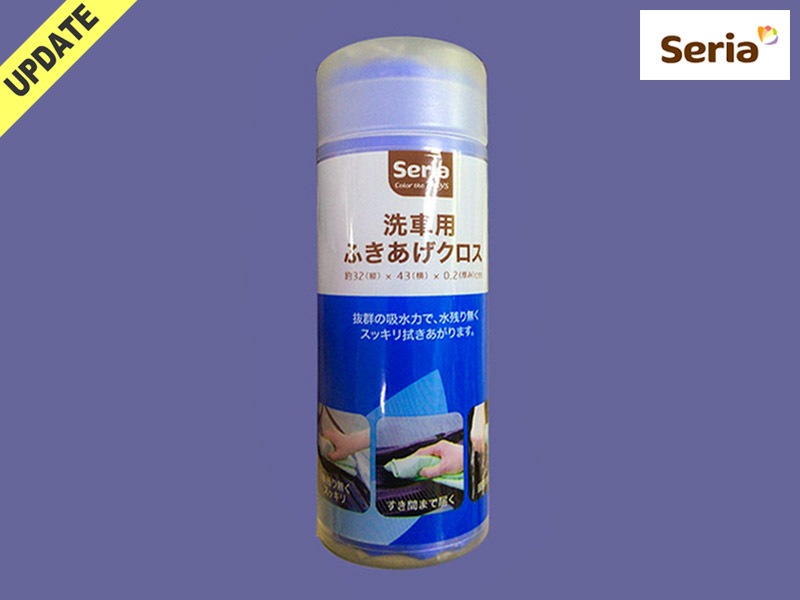 ■セリア(2016〜) セリアプライベートブランドの洗車用拭きあげクロス。 PVAの高い吸水力で、洗車後の水をスッキリふきあげることができる。 サイズ:タテ32cm×ヨコ43cm (中国製)