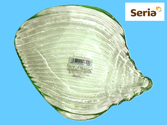セリア ガラス製の皿。インテリア用なので、食品には使えない。 サイズ:11.5cm×15.5cm×深さ約2cm 画像のブルー、グリーンの他、クリア色もある。 (中国製)