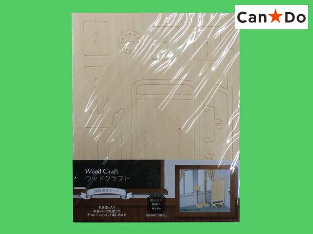 ■キャンドゥ ウッドクラフトの『学校シリーズ』から。 なつかしの身体測定セット 本体サイズ 28.5cm×18.5cm 紙やすり1枚付き 組立難易度 ★ ※在庫限りで販売終了なので、欲しい方はお早めに。 (中国製)