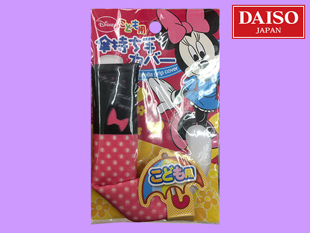 ダイソー(2017) 傘の持ち手につけるカバー、ミッキー&ミニー。 別途、長さ45cm~50cmの子ども用傘に対応した子供用とがある。 (中国製)
