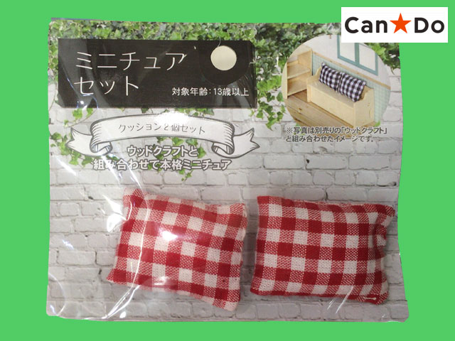 キャンドゥ <対象年齢13歳以上> キャンドゥウッドクラフトにぴったりの、ミニチュアコレクション。ソファ用のクッション2個セット。 サイズ:3cm × 4cm。 (中国製)