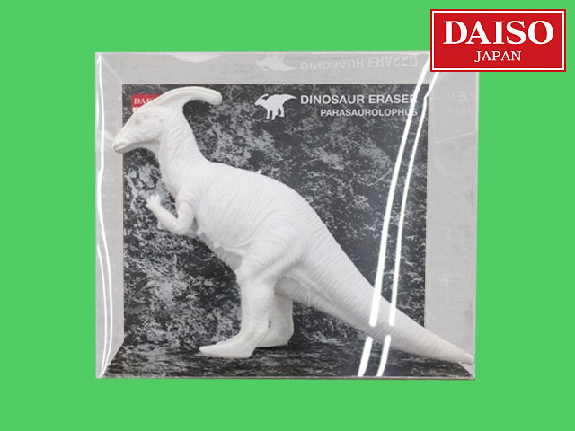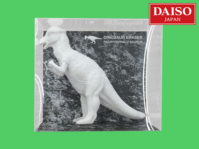 ■ダイソー 2017年から発売された巨大な消しゴムシリーズ。 一応「消しゴム」となっているが、かなり大きくリアルで「フィギュア」と言った方が近い。 クリアケース入りなのでそのまま飾るのもよし、無色なのでカラーリングも楽しめる。 恐竜シリーズと動物シリーズがあり、こちらは、恐竜シリーズから ①ケティオサウルス ②パラサウロロフス ③パキケファロサウルス (中国製)
