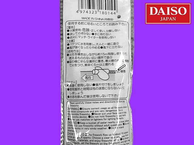 ■ダイソー いわゆる回転系の花火で、昔は『円盤花火』などと呼ばれたが、時代に伴って『UFO花火』など変遷してきた。元は同じ。 5個入り。 (中国製)