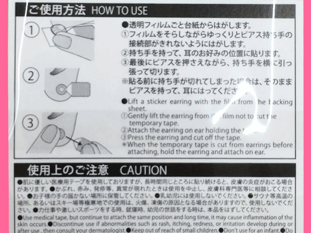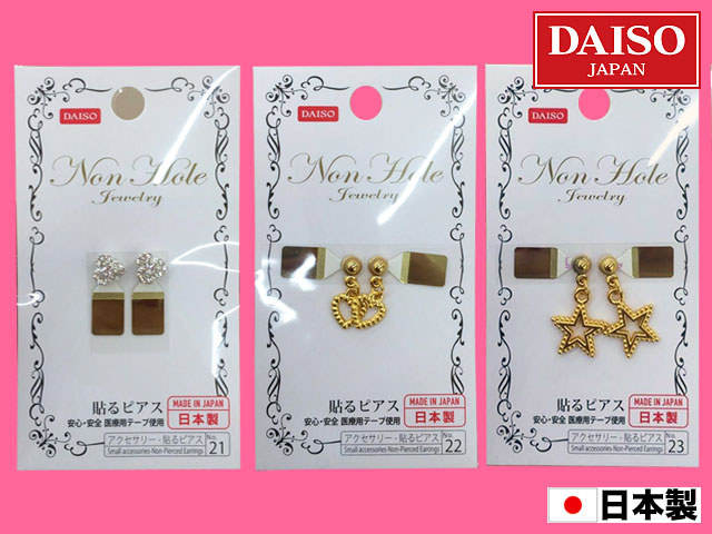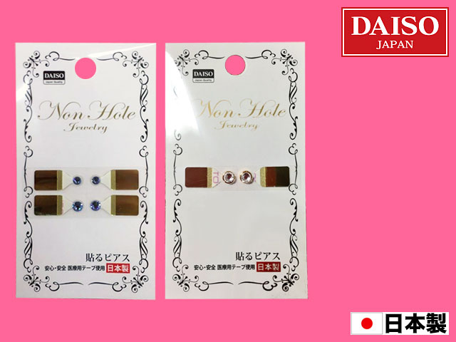 ■ダイソー 医療用のテープを使用した貼るだけのノンホールピアス。 取り替えテープが別途販売されている。 (日本製)