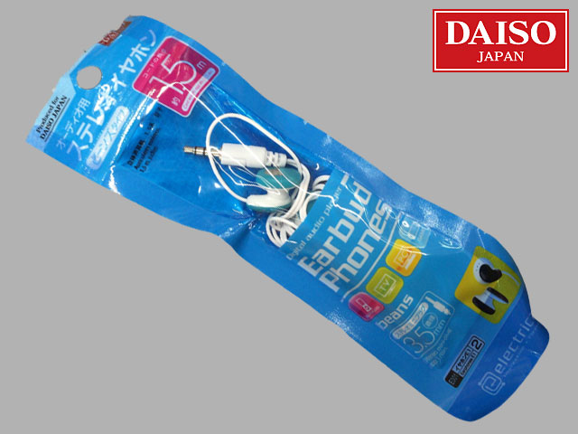 ■ダイソー 密閉型イヤホン。 コードは1.5mと、ダイソーのイヤホン最長の3.5mがある。 (中国製)