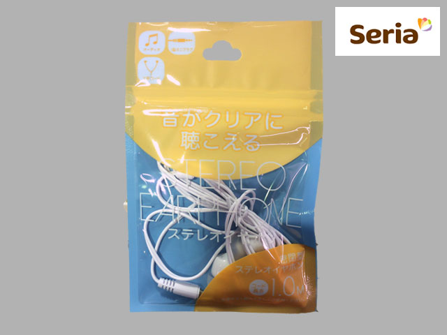 ■セリア 標準的な密閉型ステレオイヤホン。 コード長100cm (中国製)