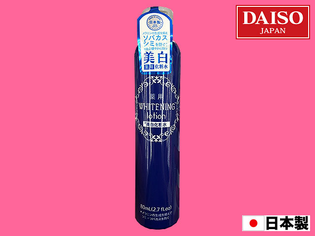 ■ダイソー(2017〜) メラニンの生成を抑えて、シミ、そばかすを防ぐホワイトニング化粧水。 「医薬部外品」の取り扱い。 80ml (日本製)