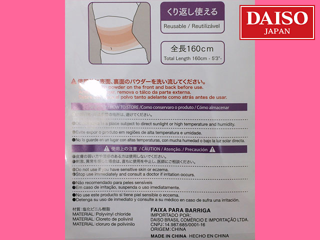 ダイソー 巻いた部分の発汗をうながし、部分的シェイプアップを促す。 こちらはウェスト用。再利用可能 全長:160cm (中国製)