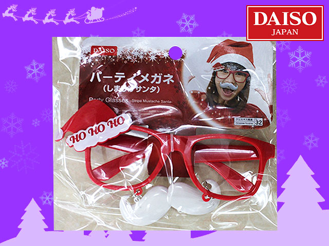 ■ダイソー(2017~) 仮装用のフレームメガネ。 メガネ本体から、「ひげ」や「鼻」が吊るされている。 パッケージの女性の表情が秀逸。 左から ・つるひげサンタ ・しまひげサンタ ・赤鼻トナカイ