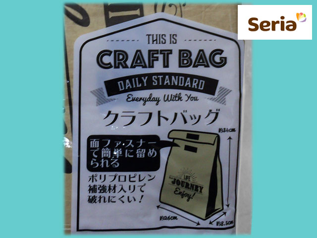■セリア アーリーアメリカンな雰囲気のPPP製クラフトバッグ。 マジックテープで閉じることができる。 サイズ:34cm × 26cm マチ8.5cm (中国製)