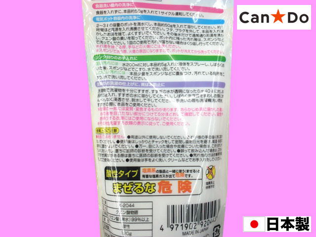 ■キャンドゥ、セリアほか 水垢落としに効果の高いクエン酸。 内容量:120g(内容量の多い物も100円以上で販売されている) (日本製)
