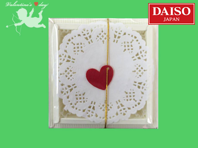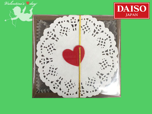 ■ダイソー(2018〜) グラシンカップ×4、オーナメント、レースペーパーの付いたトリュフボックス。4個用。 ホワイト、ブラウンの他にレッドのバリエーションがある。 (中国製)