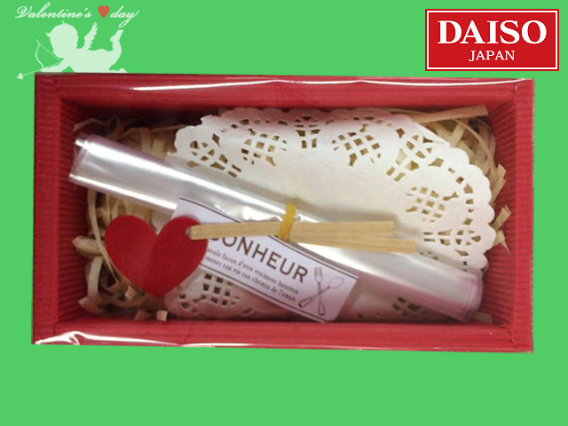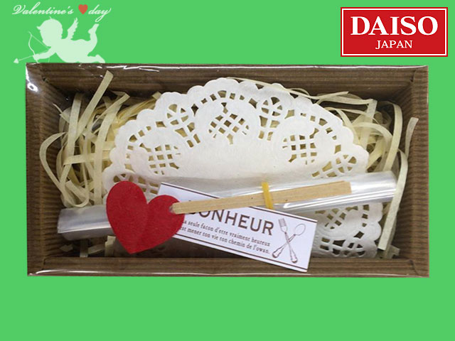 ダイソー(2018〜) オーナメント、レースペーパー、紐とタグの付いたギフトボックスセット。 (オブロングは横長の意味) サイズは、約15cm × 7cm × 高さ6cm(未計測) 画像のブラウン、レッドの他、ホワイトのバリエーションがある。 (中国製)