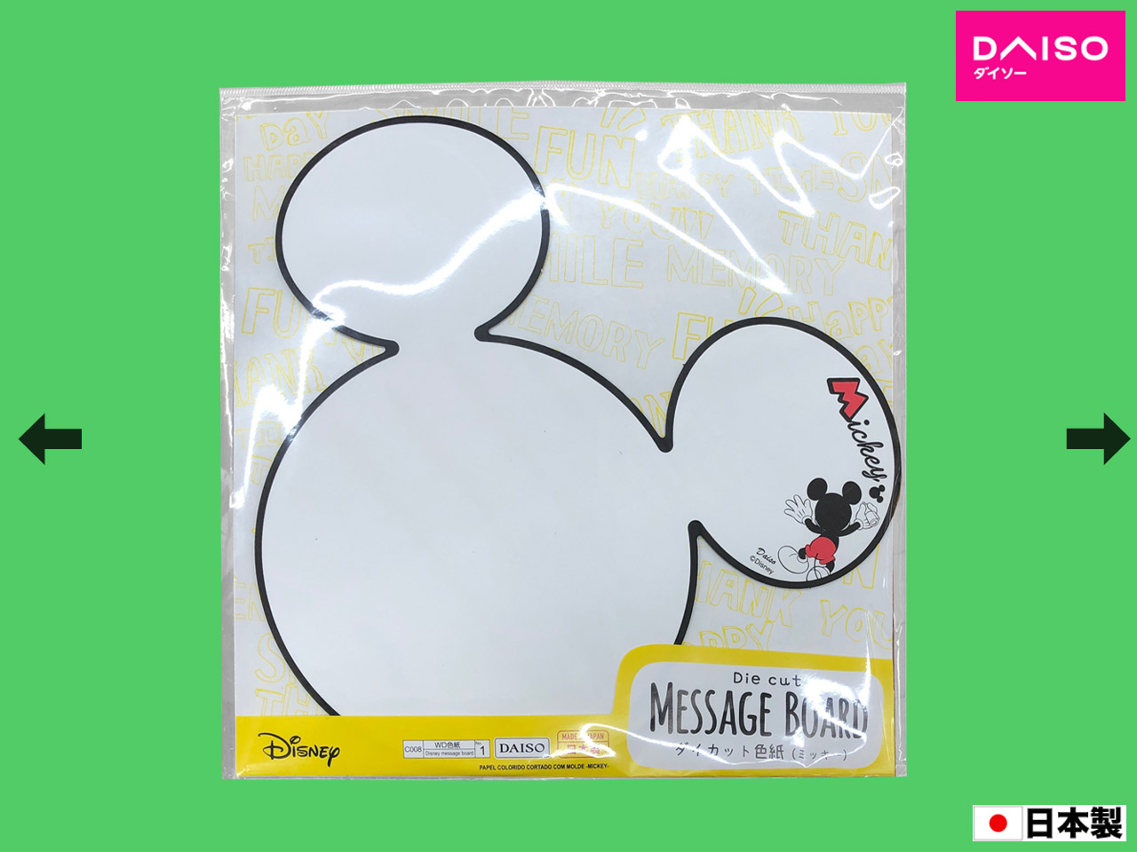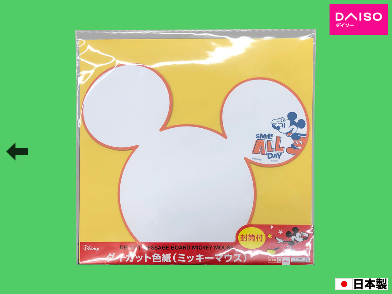 ダイソー(2017〜) ミッキーのダイカット色紙。 (日本製)