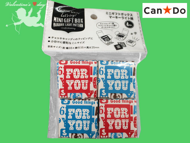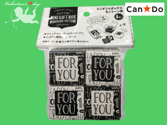 キャンドゥほか(2018〜) ミニサイズのギフトボックス4個セット。マーキーライト柄とモノトーン柄の2種類。 サイズ:3.5cm × 3.5cm × 高さ2.5cm (中国製)