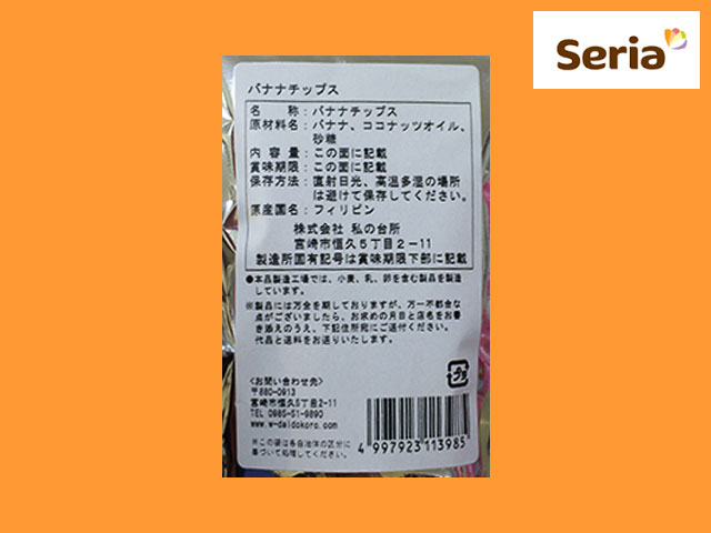 ■セリア セリアがシリーズ展開している製菓用の材料。 キャベンディッシュバナナの輪切りをココナッツオイルで揚げたバナナチップス。 ケーキの混ぜ込みや、クッキー、チョコなどのトッピングに。 内容量:20g 原産国:フィリピン