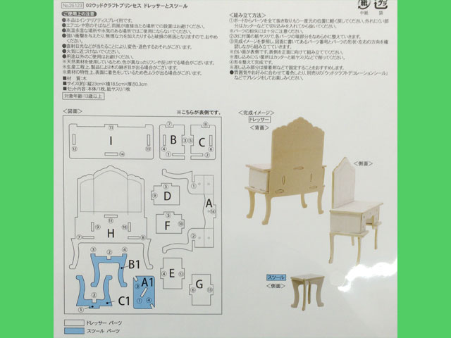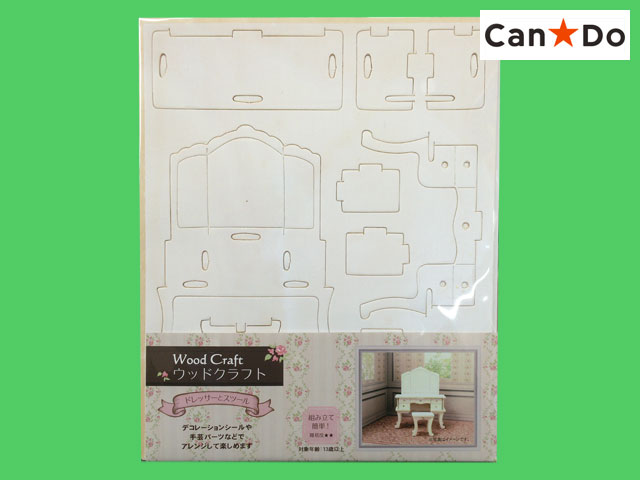 ■キャンドゥ ウッドクラフト。2017年末登場の『プリンセスシリーズ』から、ドレッサーとスツール。 本体サイズ 28.5×18.5 紙やすり1枚付き 組立難易度 ★★☆ (中国製)