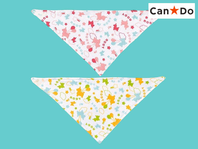 ■セリアほか(2017〜)キャンドゥ・ワッツでも販売を確認 2017年より展開されたロディシリーズから。ポリエステル製のよだれかけ。2色。 サイズ:18cm × 37cm