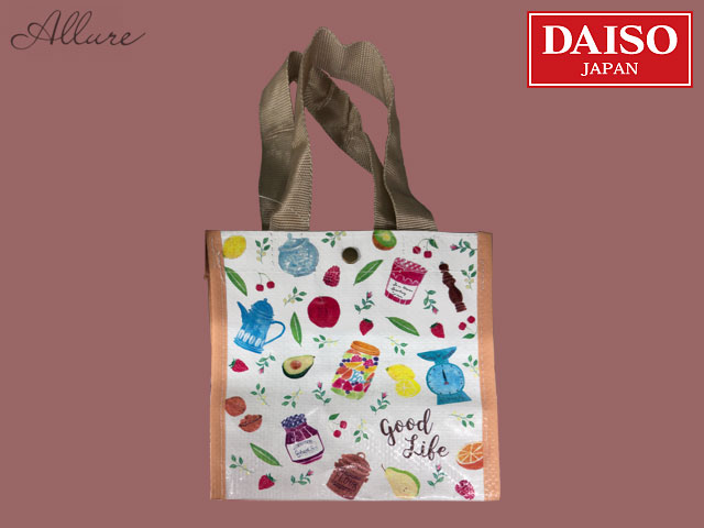 ダイソーが2017年5月から、「大人かわいい」をテーマに、大々的に展開しているキッチン雑貨ブランド『アリュール』第二弾から。ミニバッグ。