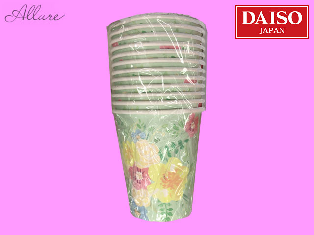 ダイソーが2017年から「大人かわいい」をテーマに、大々的に展開しているキッチン雑貨ブランド『アリュール』の第一弾から紙コップ12個入り、2種。