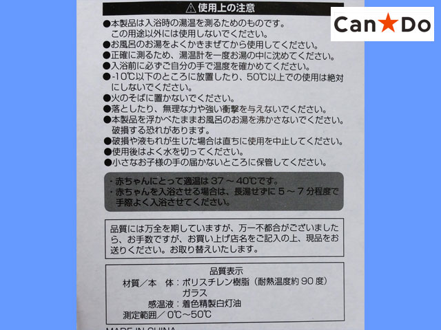 ■キャンドゥほか エコー金属製、お風呂に浮かぶ赤ちゃん入浴用の温度計。 0°〜50°C サイズ:6.7cm × 14.0cm (中国製)