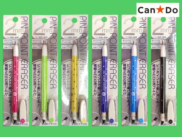 キャンドゥほか 細かい部分をピンポイントで消せるイレーサー。 替えゴム2個入り。 (中国製・消しゴム部 日本製)
