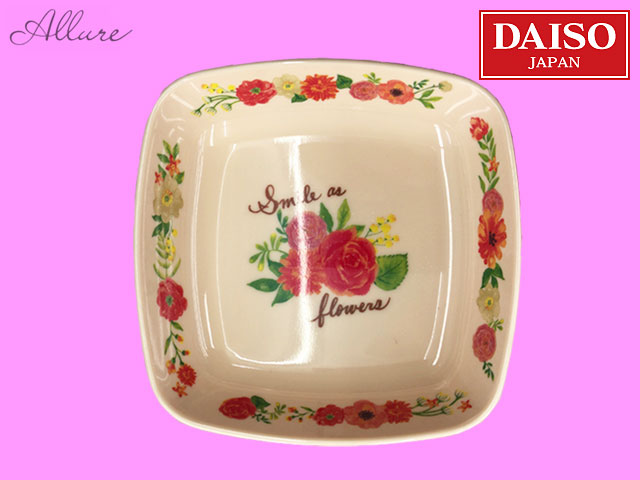 ■ダイソー(2018〜) ダイソーが2017年5月から「大人かわいい」をテーマに、大々的に展開しているキッチン雑貨ブランド『アリュール』の2018年追加バージョン。メラミン製の角ボウル。 サイズ:13cm × 13cm × 3cm ①カフェ ②フローラル ③トラベル ☞他のアリュールシリーズを見る