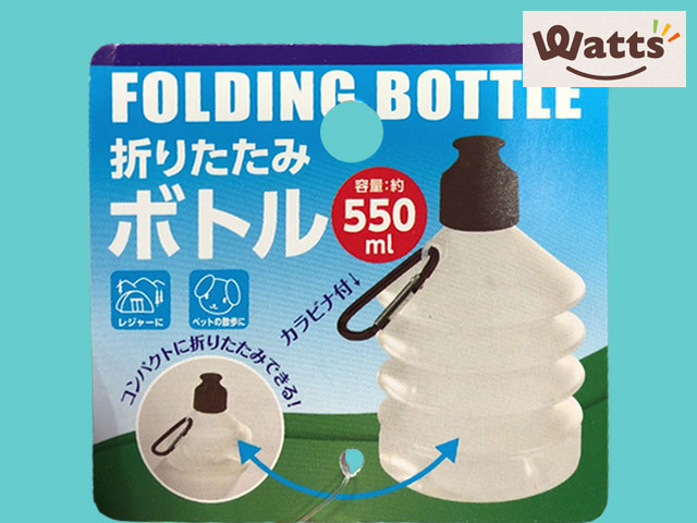 使わない時は非常にコンパクトになるジャバラ式の折り畳み水筒。カラビナ付き。