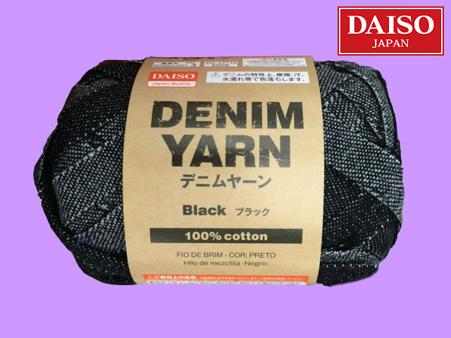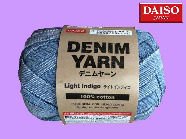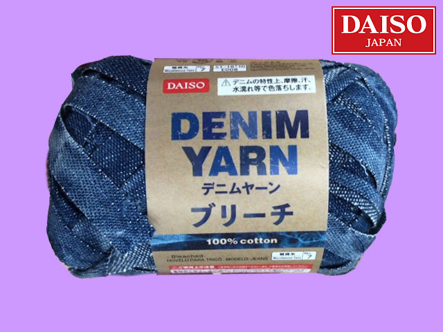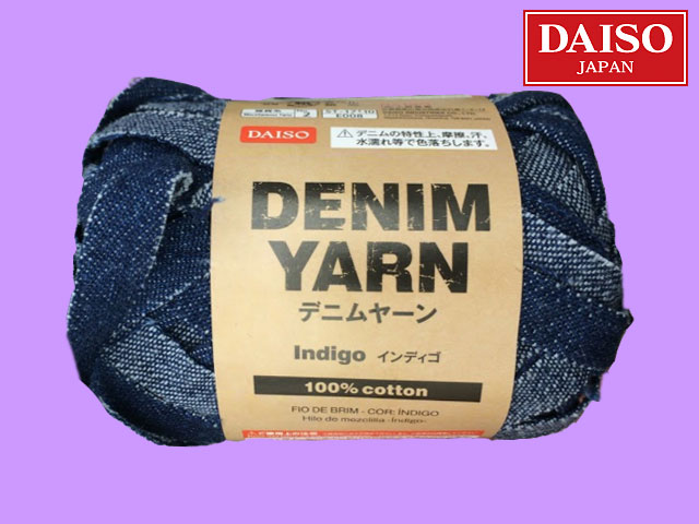 ■ダイソー(2018〜) コットン100%、クラフト向けデニム地のヤーン。4種類。 #1 ライトインディゴ #2 インディゴ #3 ブラック #7 ブリーチ ポリエステル100%、約25g(糸長約10m) <編み針の目安> 10mm <標準ゲージ> 8〜10段 8〜10目 /10cm平方長編み (中国製)