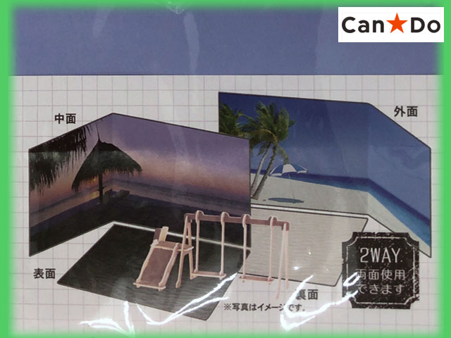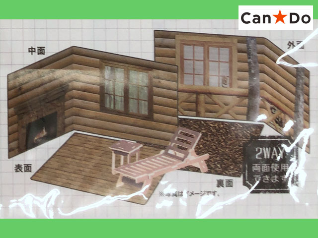■キャンドゥ ウッドクラフト。アウトドアシリーズの背景ボード。3種類 ①別荘 ②ログハウス ③海の景色 ④山の景色 それぞれ中面と外面の2種類に利用できる。 ※在庫限りで販売終了なので、欲しい方はお早めに。 (中国製)